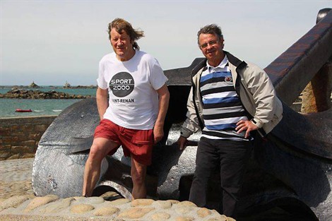 Goulven Elégoët et Marcel Guardos à Portsall, à quelques jours du départ du nouveau défi.
