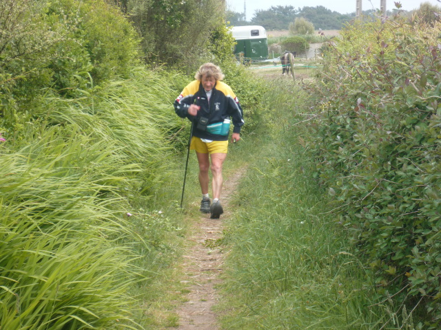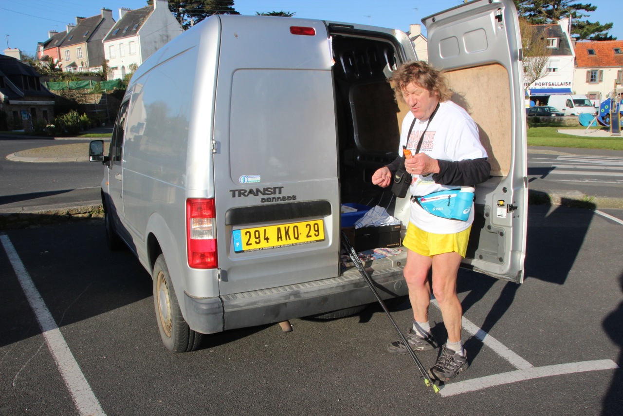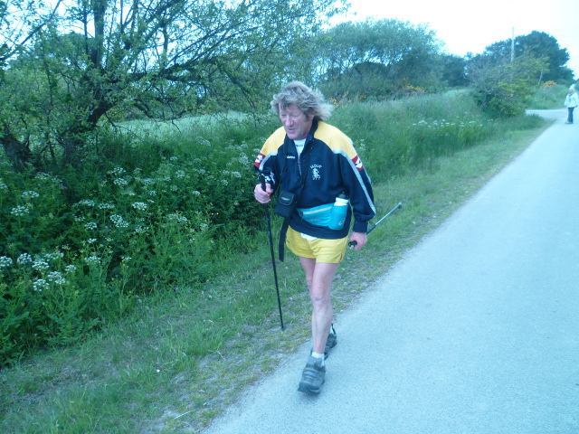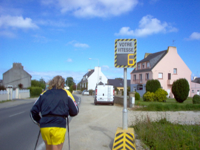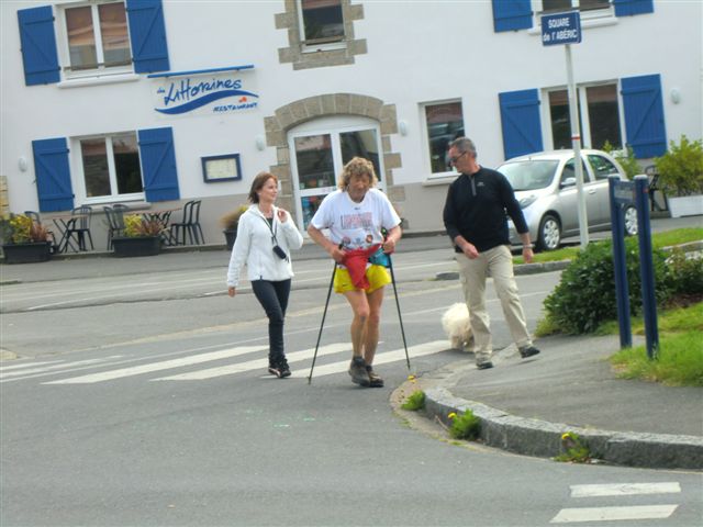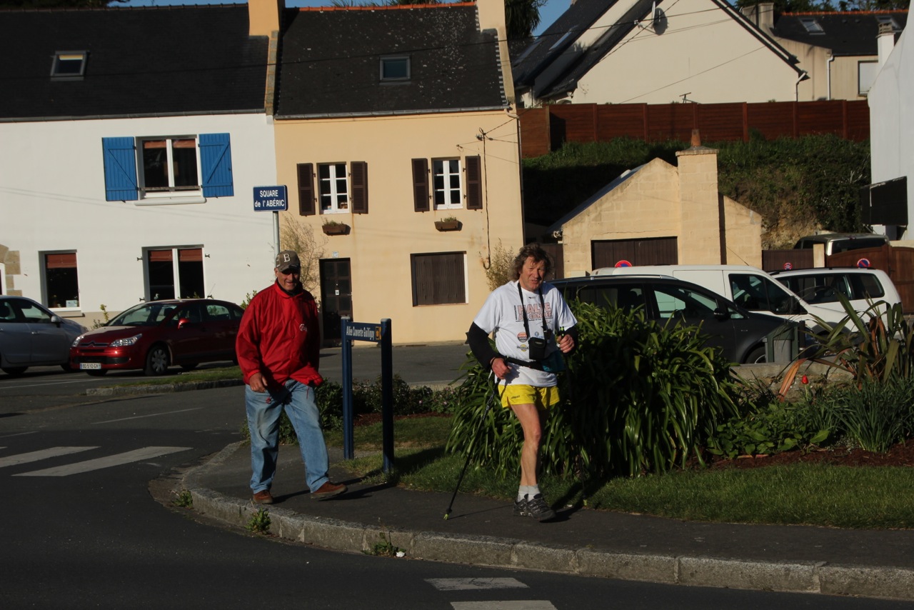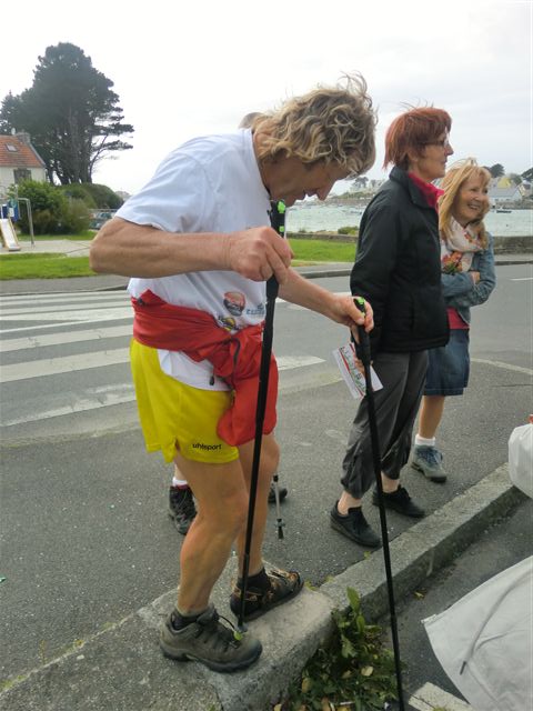 Samedi Brigitte, ayant raté le départ de 9 heures, a dû employer ses talents de marathonienne pour me rejoindre. (Goulven)