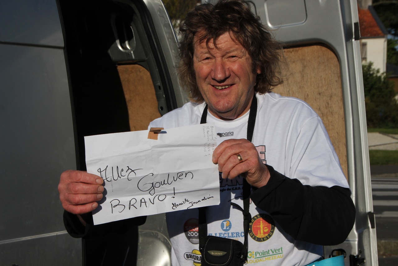 Ci-joint quelques photos prises le 14 Mai. JOELLE et moi sommes arrivées au ravitaillement de 11 h et FR3 IROISE était là pour faire un reportage sur le défi de GOULVEN.