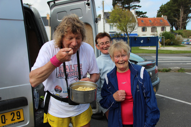Dimanche 5 Mai : Pause ravitaillement après une boucle effectuée en compagnie de Joëlle (78 ans) et Anne-Marie, des Marcheurs de Pen ar bed. ©MCPellen
