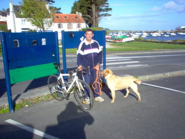 Des fervents supporters, Robert et son chien Dick, de Landunvez toujours fidèles au poste lors du dernier passage.