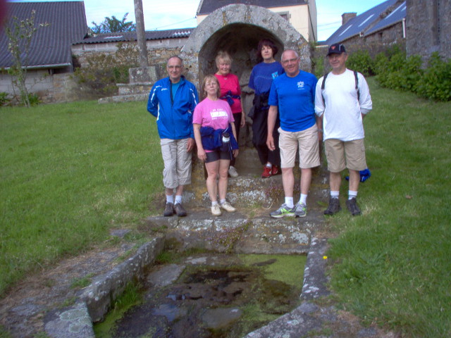 Les marcheurs de Landunvez et de Ploudal se sont désaltérés à la fontaine de Kerlanou (Philippe, Michelle, Joëlle, Marie-Denise, Georges et Hervé).