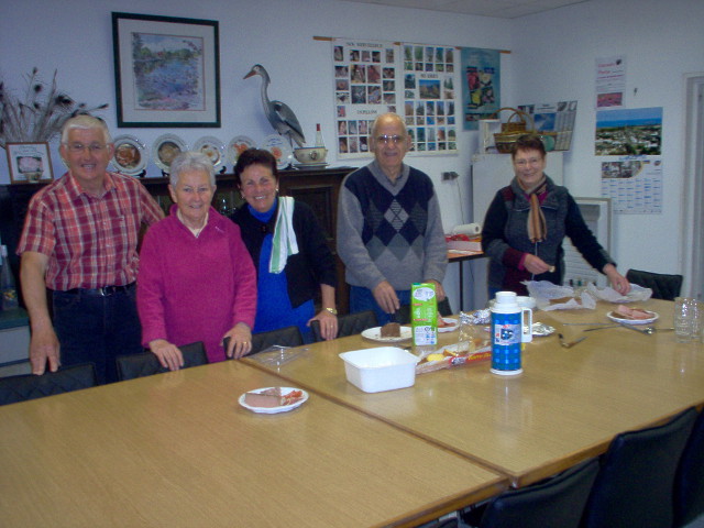 Petite pause au Moulin Neuf avec Raymond, Marie-Josée, Madeleine, Jeanine, Mithé et Christine.