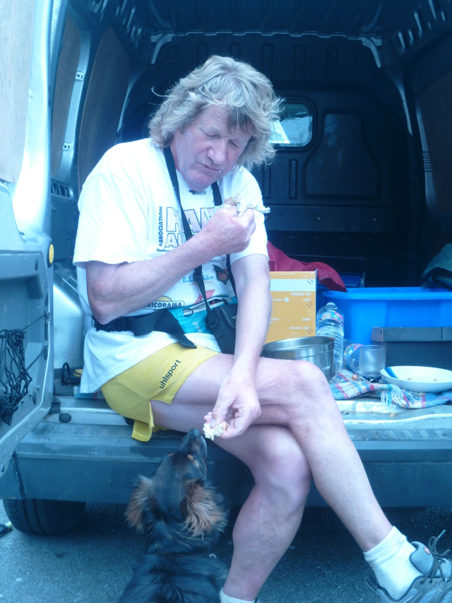 Dimanche 5 Mai : Comme souvent, un petit groupe l'attend à l'Abéric près de son fourgon gris. Pour l'encourager ou l'accompagner dans sa prochaine boucle. ©MCPellen